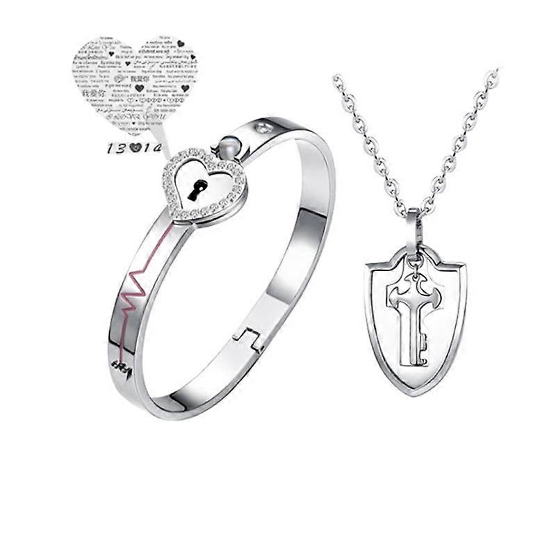 Concentric Lock Titanium Steel Bracelet Necklace Set Lovers Stainless Steel Jewelry New Gold Projection Stone,Silver