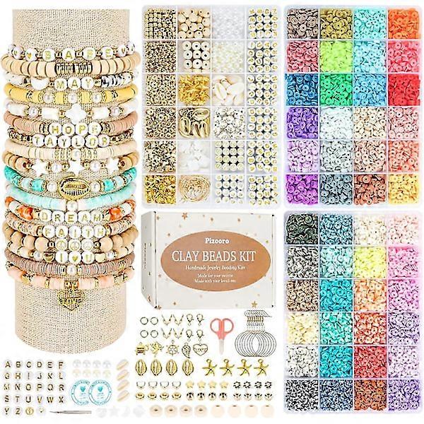 Clay Beads 3 Boxes Bracelet Making Kit, 10500 Pcs Beads for Jewelry Making, Round Letter Beads with Charm and Elastic Cords, Friend Gold