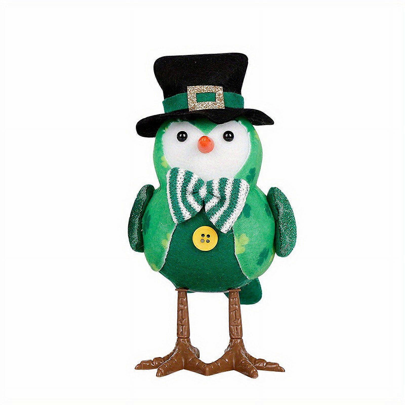 Lksixu Glowing Birds Plush Spring Decor, Shamrock Birds with LED Lights Green Table Ornaments