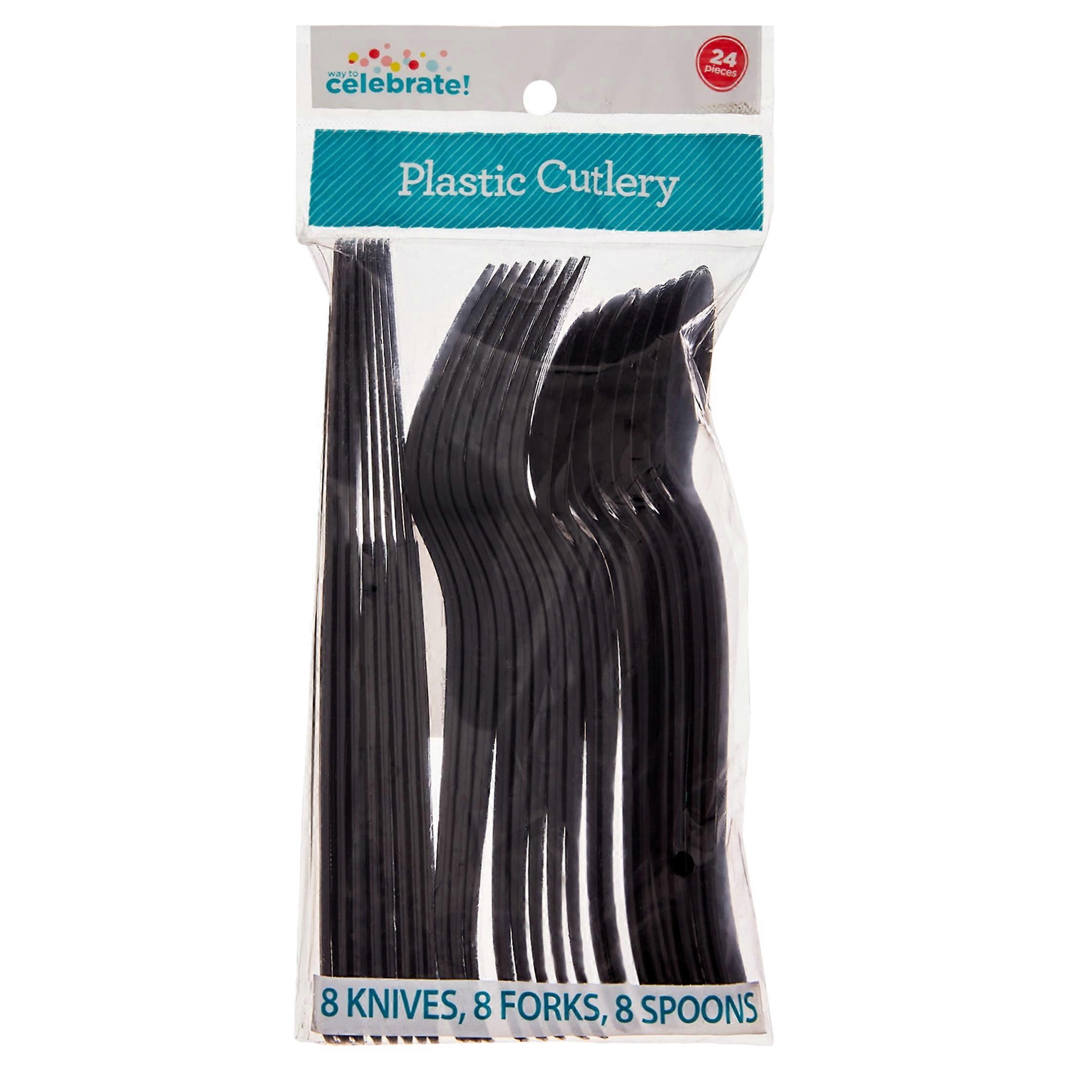 Way to Celebrate! Black Birthday Party Plastic Cutlery Set for 8, 24pcs