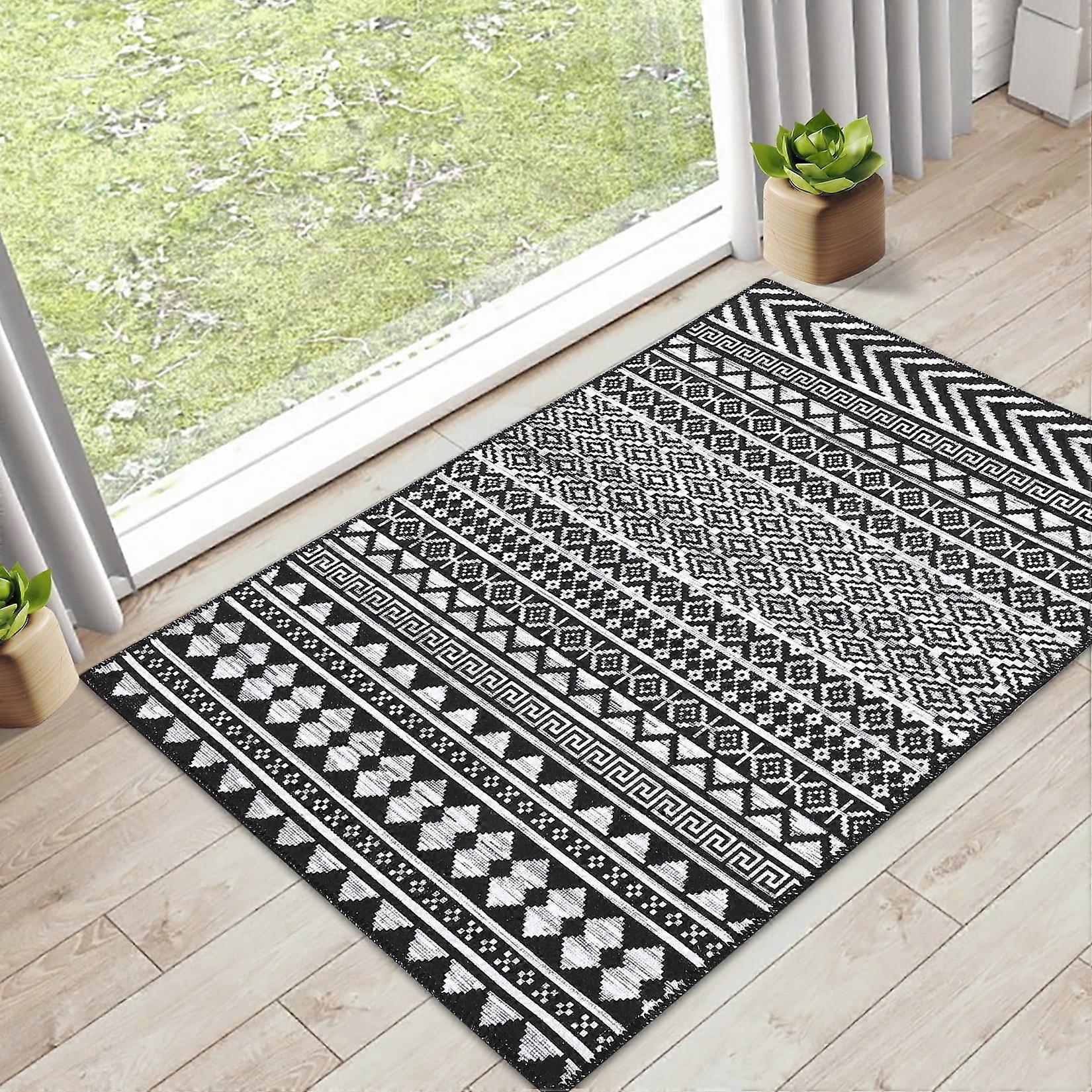 Garvee 3' x 5' Farmhouse Area Rug Indoor Machine Washable Moroccan Boho Trellis Tribal Geometric Stain Resistant Floor Carpet, Black
