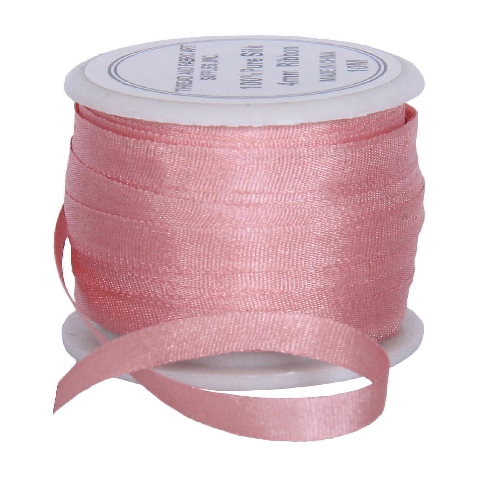 Threadart 100% Pure Silk Ribbon - 4mm Pale Pink - No. 540- 3 Sizes - 50 Colors Available Beautiful 4mm wide 100% silk ribbon in a rainbow of colors on 10m (11 yard) spools. Use for silk ribbon embroidery, couching, crazy quilting, doll decor, and more. 100% silk ribbon in a rainbow of colors. Each spool has 10 meters (11 yards) of ribbon. Matching colors in each of the sizes makes it easy to use a variety of styles in your projects Beautiful 100% silk ribbon in a rainbow of colors. Threadart pure 100% silk ribbon is the highest quality ribbon available. This brand new, high quality silk ribbon can be used in all your arts and crafts projects including silk ribbon embroidery, crazy quilting, scrapbooks, dolls and more. The ribbon comes on spools pictured for convenient storage. Available in 3 widths and 50 colors. Great for all your projects.