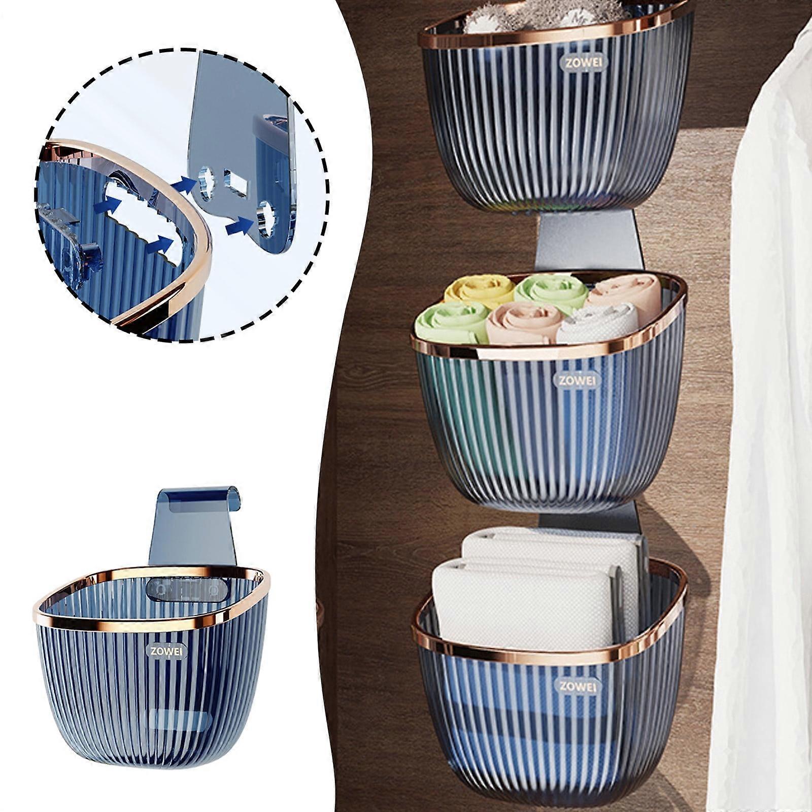 ManTuo Easy Mount Bathroom Storage Shelf,Plastic Shower Basket, Kitchen Storage with Hooks for Bathroom, Cosmetics, Kitchen Items, Vegetables