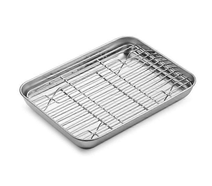 Baking Sheet with Rack Set (1 Sheet + 1 Rack), Stainless Steel Tray & Cooling Rack, Non-Toxic, Heavy Duty, Easy Clean, 9x7x1 inch