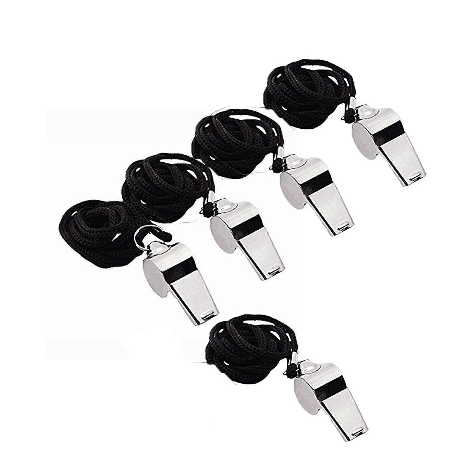 Tahtuvzn 4pc Metal Referee Whistle Set with Lanyard, Stainless Steel Sports Whistle Compatible with Soccer Football Basketball, School Supplies Gifts