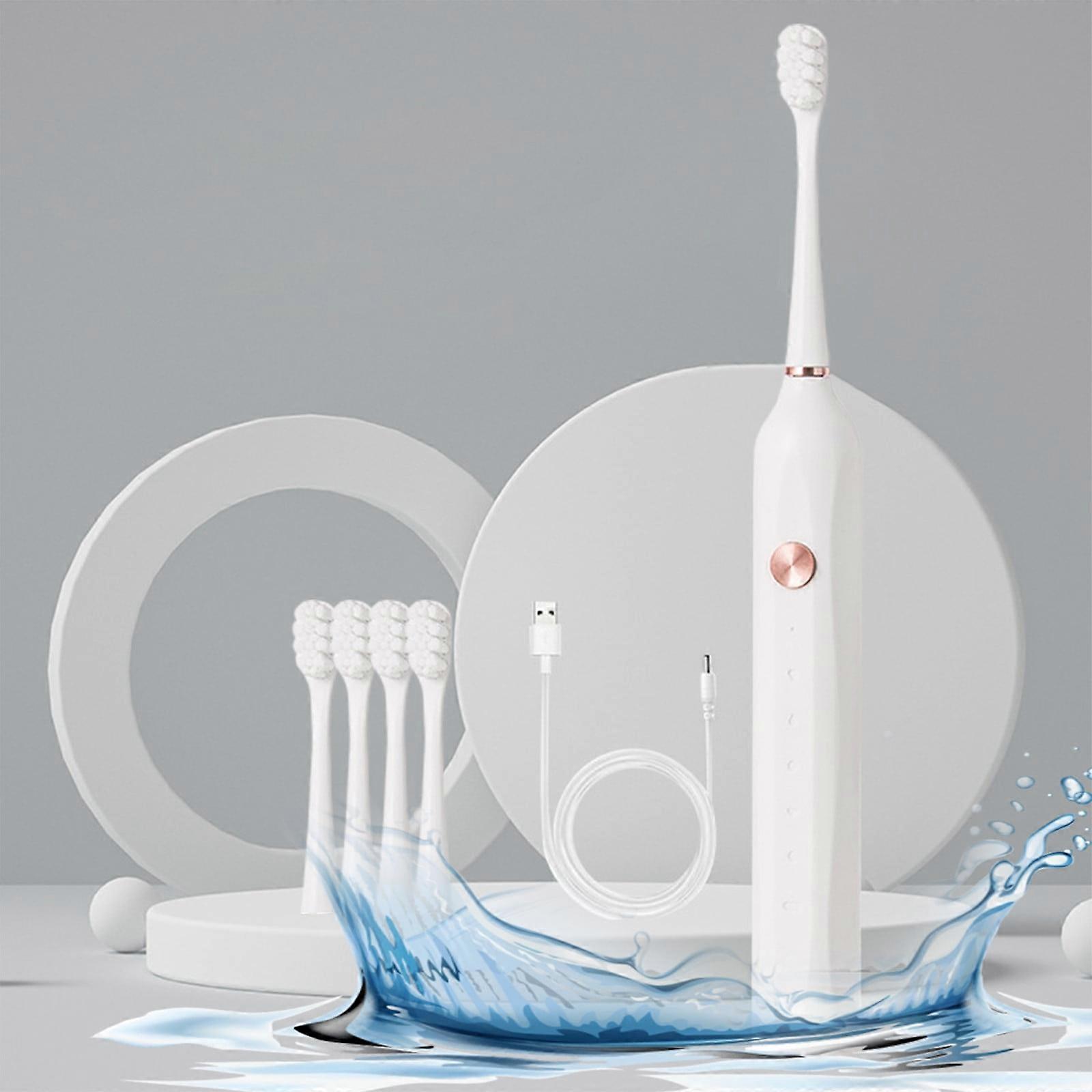 Txmfgh Electric Toothbrush w/ 4 Heads, 5 Modes, IPX7 Waterproof, USB Rechargeable, Travel Portable, Smart Timer