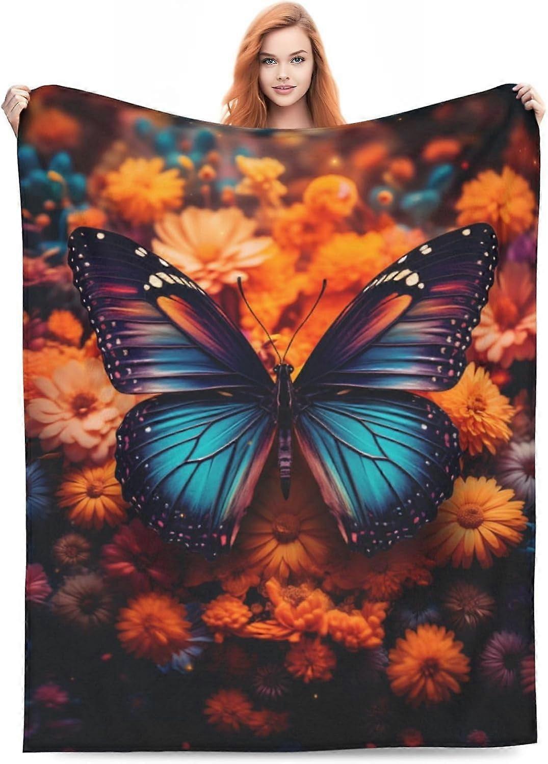 Butterfly Blanket Gifts for Girls Women, Colorful Floral Garden Flannel Throw for Home Couch Bed Sofa, Soft Fuzzy Lightweight Decor, 80x60 in
