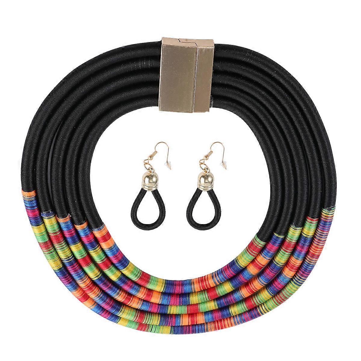 1 Set Multilayer Choker Necklace & Earrings Set, African Style Hand-woven, Black, Magnetic Buckle, Unique Jewelry Kit for Women
