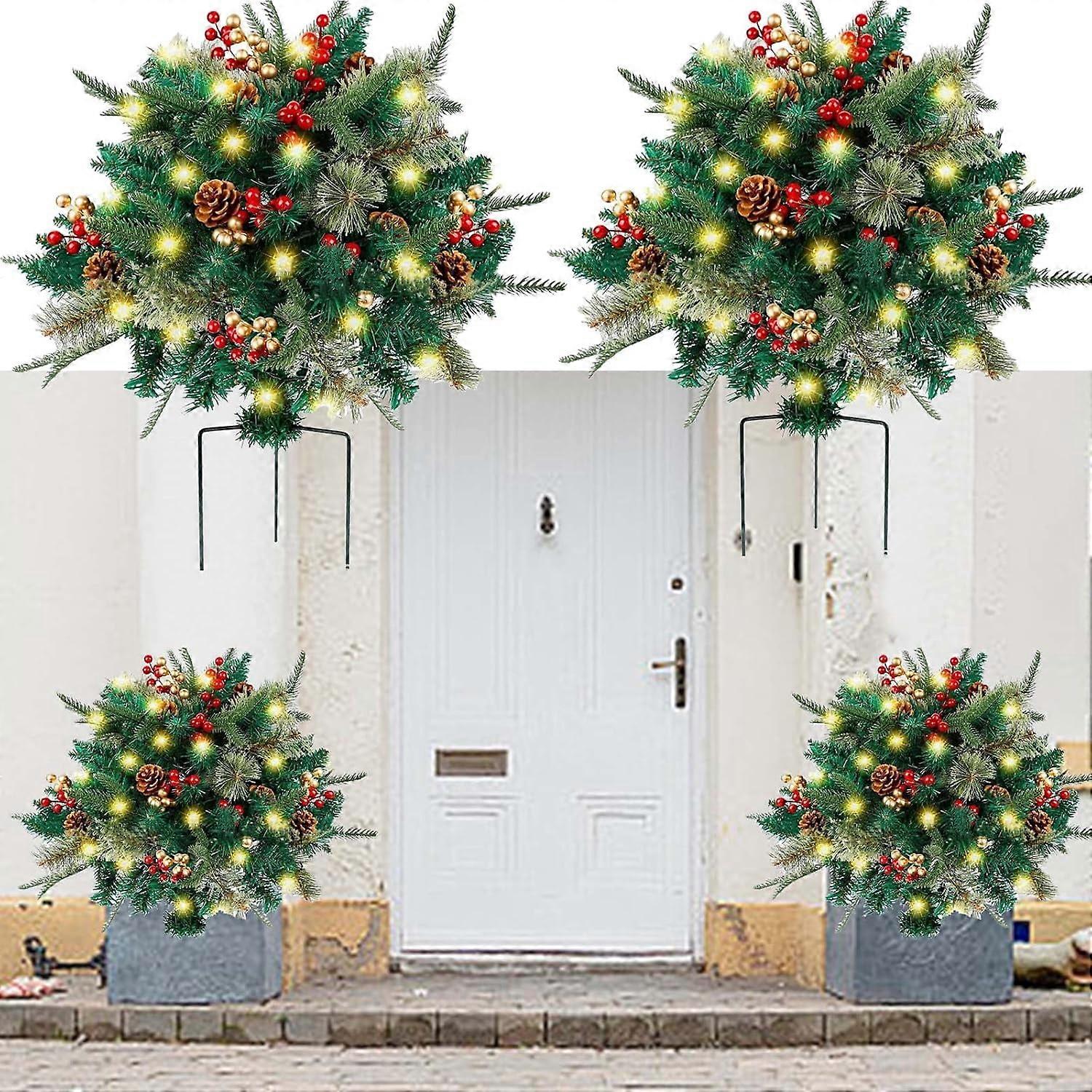 Outdoor Pathway Christmas Trees, Prelit Small Tree with Red Berries & Pine Cones, Battery Operated for Porch, Driveway, Garden Decor