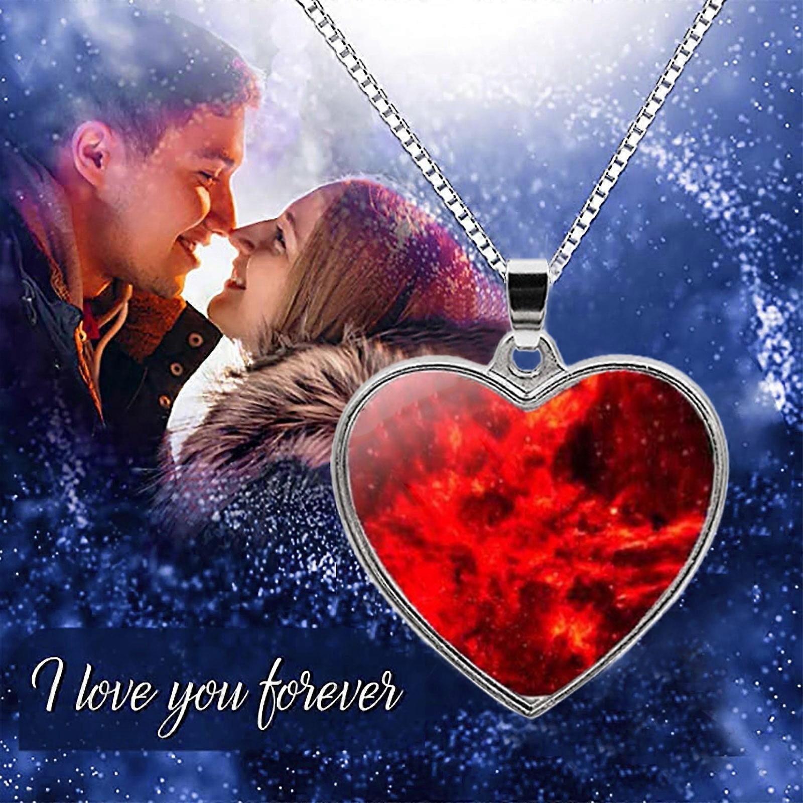 Wmhsylg Valentine's Day Mother's Day Necklaces & Pendants MilkWay Planet Galaxy Double Sided Glass Universe Heart Pendant Necklace Heart-shaped Red
