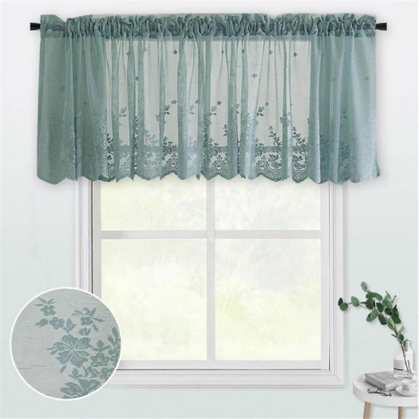 Floral Lace Valance Curtain, Embroidered Semi Sheer Short Flower Print for Kitchen, Bathroom, Cafe, 54"x35", Blue