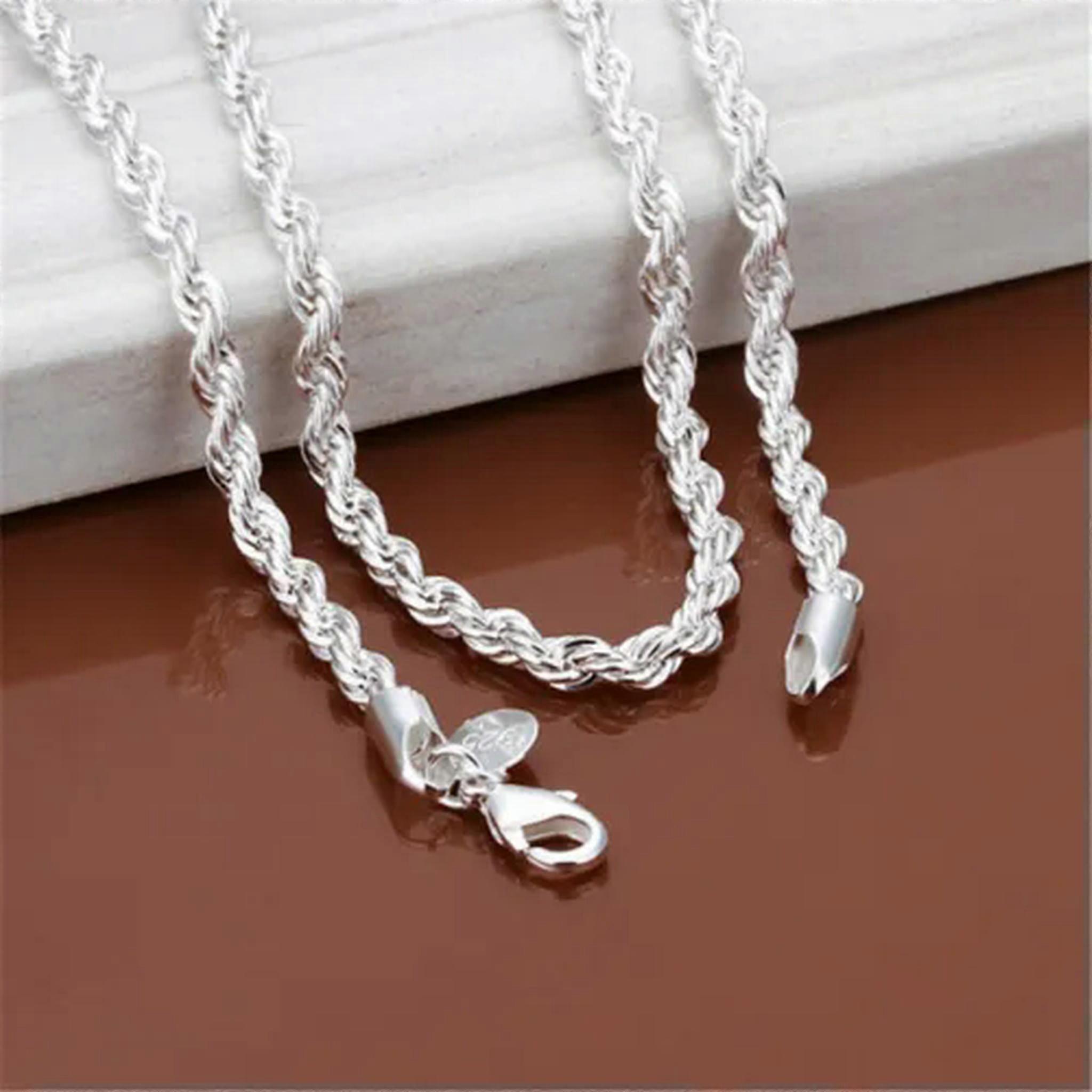 RSAMD 925 silver 4Mm rope chain necklace jewelry men women lady cute 16-24inch wedding-20inch