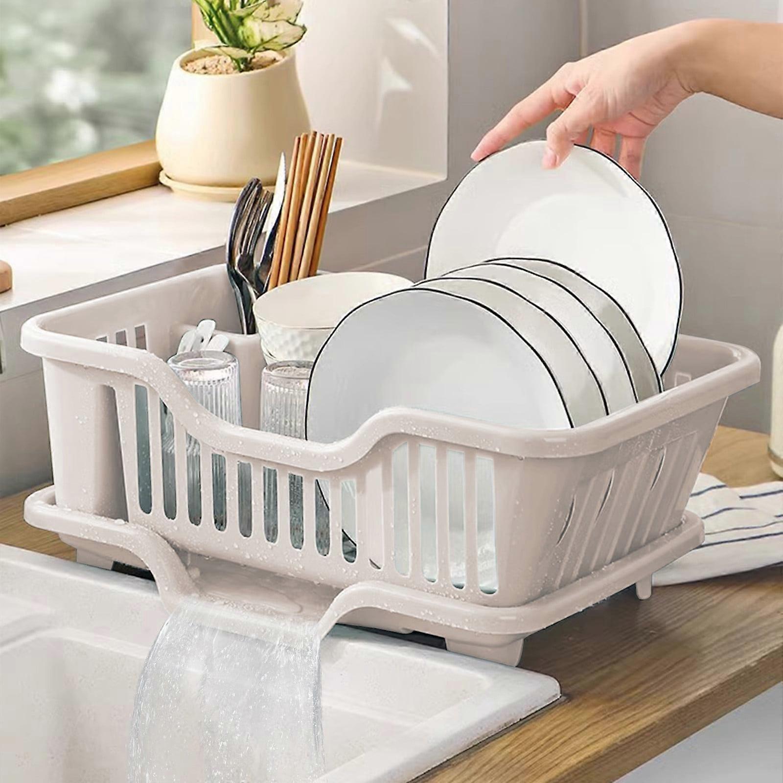 Dish Drying Rack with Drainboard Dish Drainers for Kitchen Counter With Sink Spout Dish Strainers with Utensil Feature: Quantity: 1Pcs Colour:Beige Material:Polypropylene Product size:45x25x17.5cm/17.71x9.84x6.88in Package size:46x26x18cm/18.11x10.23x7.08in Net weight:760g/1.67lb Gross weight:940g/2.07lb Descrition: 【Strong Frame & Expandable】the kitchen dish drying rack is constructed from high grade Polypropylene plastic. The 4 feets will avoid slipping and ensure your sink and countertop from scracthes and chips. 【Fast Drainage System】this dish rack and drainboard set feature with 360° rotational fast draining channel which is for directing draining water directly into the sink. this provides you with several placement options to suit your kitchen and sink environment. 【Multi-Funtional】the dish drainer is constructed from plastic frame which make you to hold assorted dinnerware, such as plates, bowls, goblets, cups, etc. the removable utensil help to organize your spatula, forks, chopsticks and draining water into the rack. 【Saving Space & Easy to Clean】keep countertop dry and organize with our dish drying rack with draining board. the sturdy and stable draining board is expandable, easy to use and svaing space. all the parts can be seperated to clean and easy to assembly. 【Practical】the dish drying rack with drainboard make washing dish less of a chore, keep the counter dry and clean, idea for samll kitchen. Package Content: 1 x Dish Drying Rack Feature: Quantity: 1Pcs Colour:Beige Material:Polypropylene Product size:45x25x17.5cm/17.71x9.84x6.88in