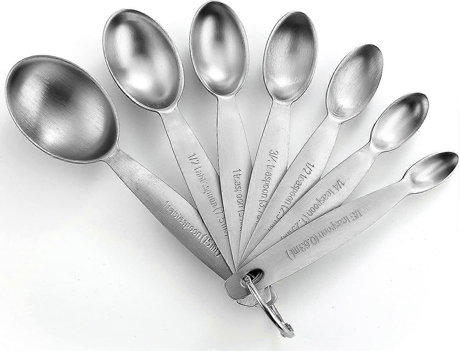 Oval Stainless Steel Measuring Spoons Set, 7-Piece with Dual Measurements for Liquid, Dry, Medicine & More