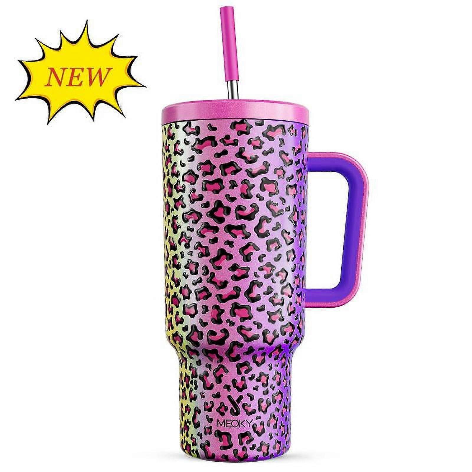 Meoky Food Grade Stainless Steel Car Mug with Anti-Spill Lid, Straw & Silicone Coaster - Portable Tumbler, Compatible with Car Cup Holders