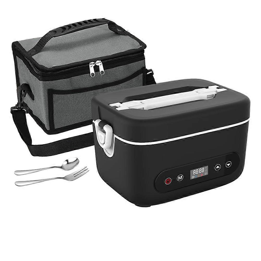 [5-Sided Heating Technology]Experience unparalleled mealtime convenience with our patented 5-sided surround heating system. This innovative design ensures 360° even heat distribution with a minimal temperature variance of ±5°F, quickly heating to 212°F. It locks in over 90% of moisture, preserving the fresh taste of your meals. [Smart Touch Control & Safety Features]Our enhanced touch panel is designed with an anti-mistouch feature to ensure precise operation and prevent accidental activation. This smart system enhances user safety during transport or storage, making it ideal for on-the-go use. [Versatile Heating Options]Tailor your meal heating with four distinct modes: Refrigerated Heating, Room Temperature Heating, Free Heating for custom time and temperature settings, and Keep Warm to maintain food at 149°F/65°C. Switch modes effortlessly with just one button for ultimate convenience. [Extended Battery Life & Power Bank Function]Powered by a robust 12,000mAh battery, our lunch box offers up to 3 hours of heating or 6 hours of insulation. A full charge takes only 3.5 hours, ensuring your meals are warm throughout the day. Additionally, it serves as a power bank to charge most smartphones. [Enhanced Capacity & Leak-Proof Design]Enjoy more of your favorite meals with a 1.2L capacity, 20% larger than standard lunch boxes. A food-grade silicone seal ensures no leaks, making it perfect for soups and sauces. Ideal for office workers, construction crews, and truck drivers. Color: Black Material: Plastic + Stainless Steel Package Contents: 1*Electric lunch box 1*Spoon 1*Fork 1*Charging cable 1*Storage bag (bag style shipped randomly)