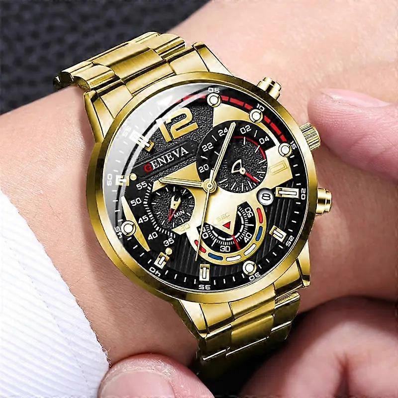 4counts-Men's 4-piece luxury gift combination: quartz watch, matching bracelet, necklace, ring accessories-suitable for daily leisure and fo
