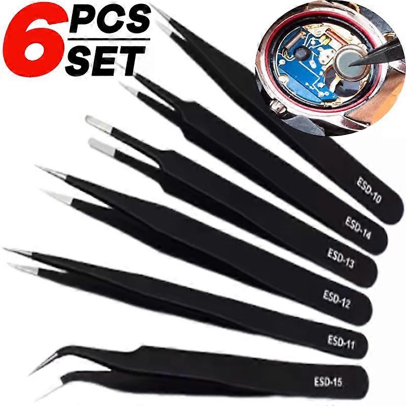 ESD Anti-Static Stainless Steel Tweezers Precision Maintenance Industrial Electronic Repair Tool Home Model Making Hand Tools