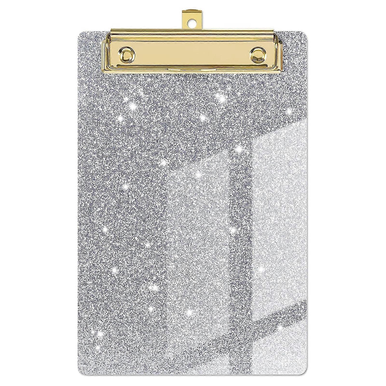 Glitter Acrylic Clipboard with Gold Clip, Compatible with Classroom, School & Office Use, Sparkly Design for Students, Women, Men