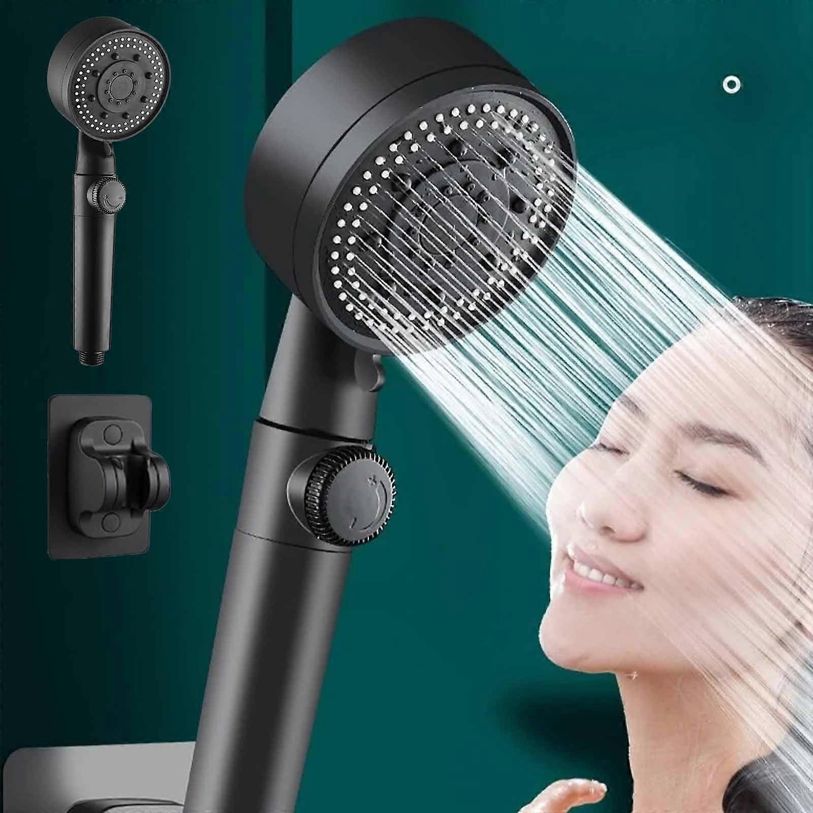Topliu Turbo Shower Head with 5 Modes, Pressurized Water Stop, Filter & Heater, Compatible with Standard Showers