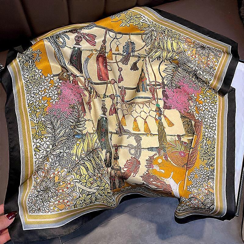 100% Silk Scarf Women Vintage Floral Pattern Kerchief Headscarf Bandana 68*68cm