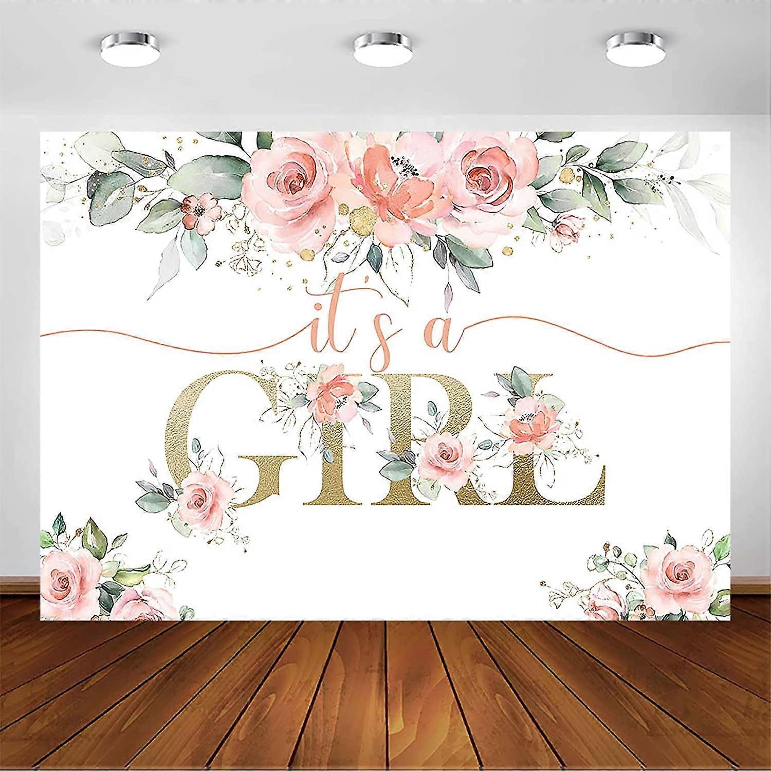 Blush Pink Floral Baby Backdrop for Girls Baby Photography Background It's a Girl Baby