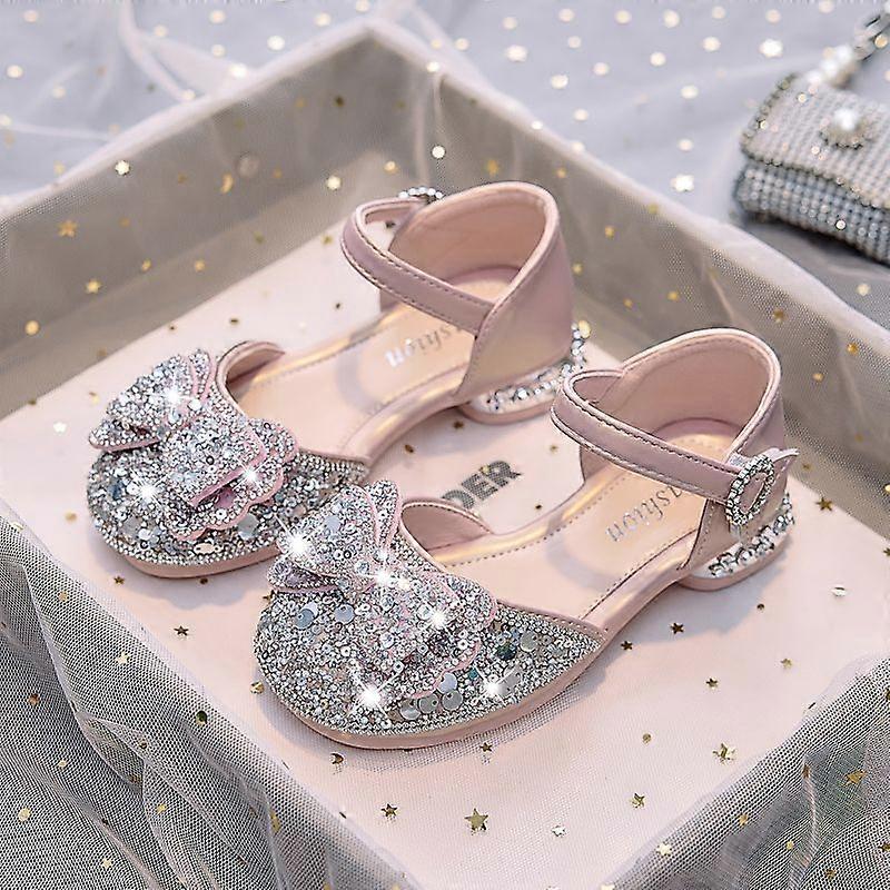 Girls' Sparkly Rhinestone Princess Shoes, Kids' Crystal Bow Tie Dress Sandals, Comfortable Soft Sole Low Heel Performance Footwear for Weddings, Birth