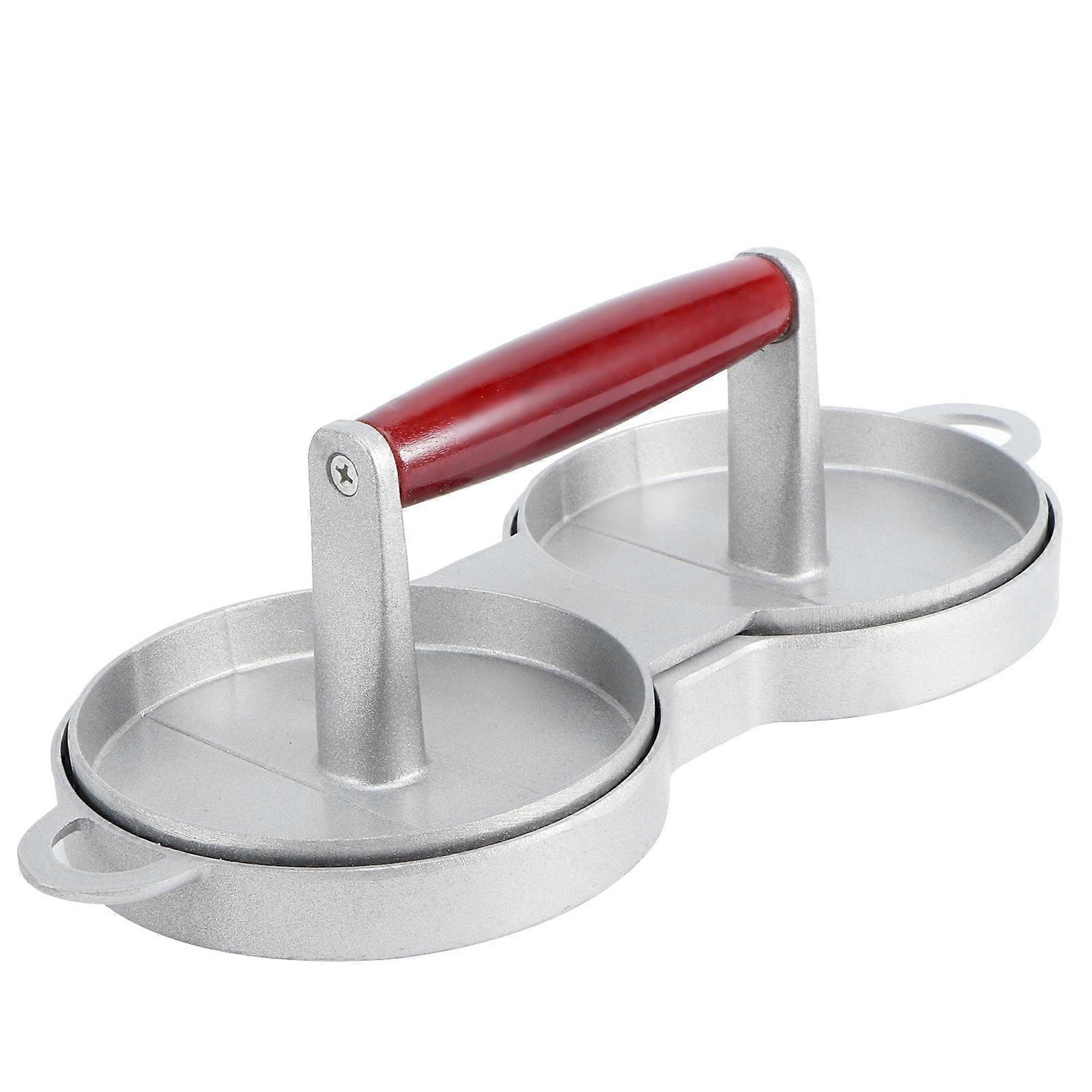 Ftory Burger Press Double Hamburger Press - 2 Non-Stick Grids, Round DIY Patty Maker with Wood Handle for Grill Compatible with Ftory