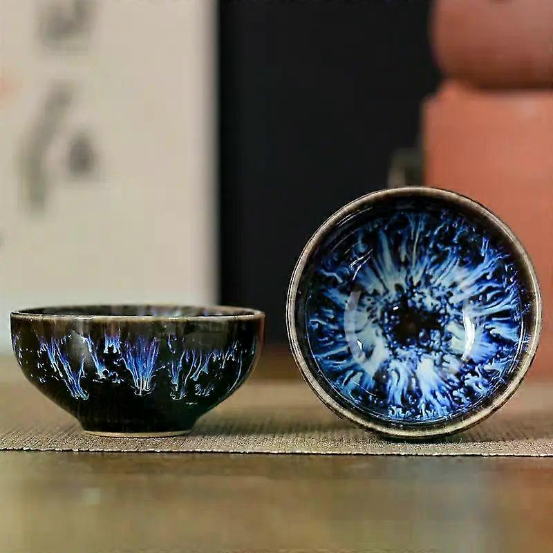 45ml Vintage Ceramic Cup Kiln Change Teacup Master Cup Tasting Cup Satin Blue Water Cup Tea Bowl Teahouse Retro Teaware