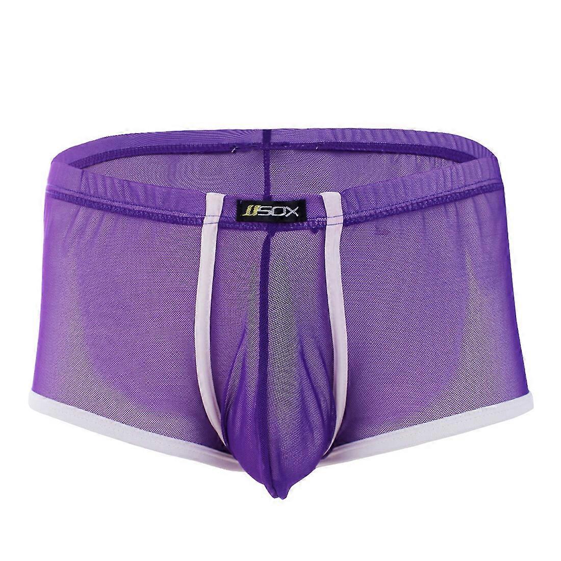 Men See-through Bulge Pouch Boxer Briefs Shorts Swim Trunks Underwear Underpants
