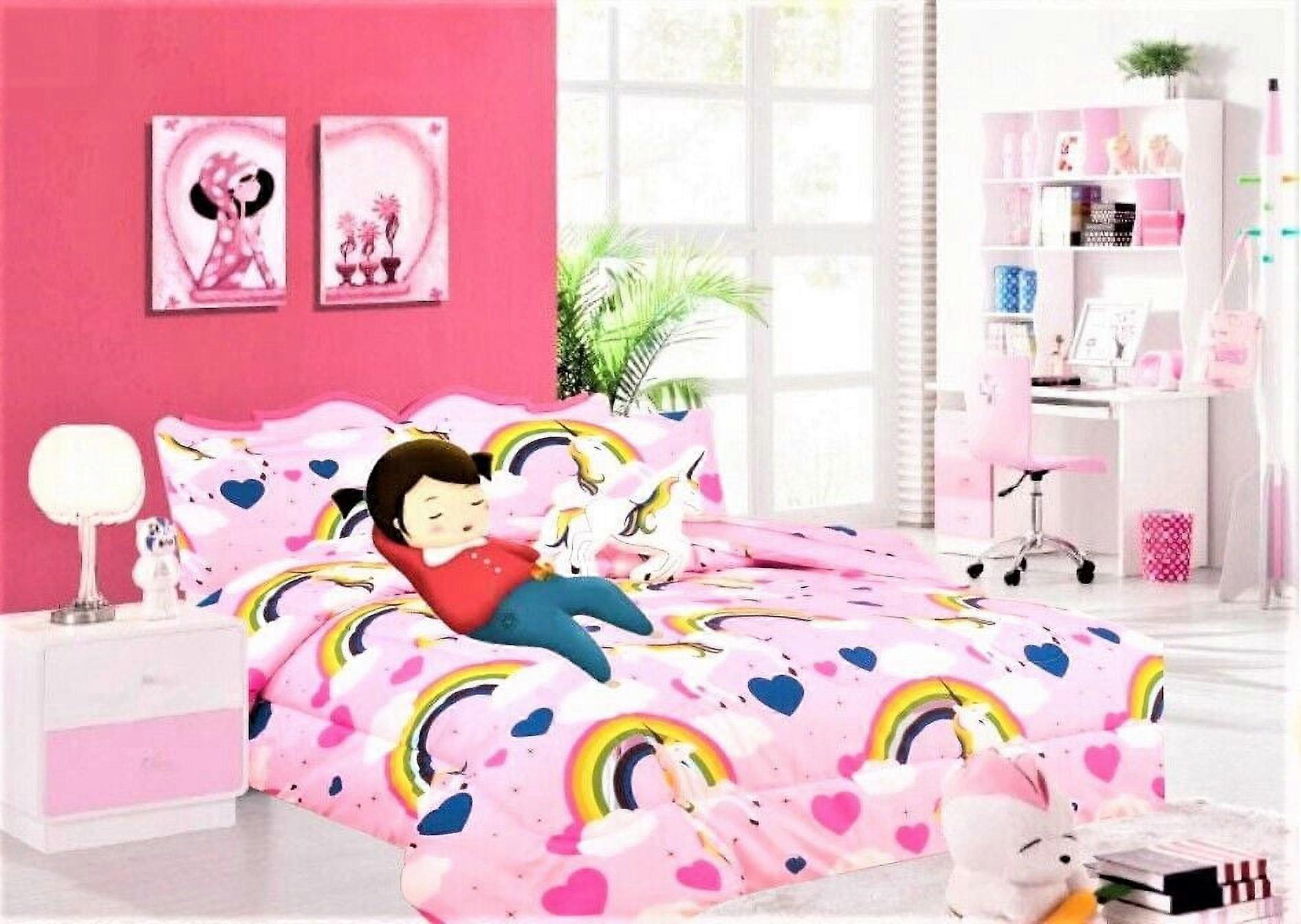 Kids girls boys comforter set bed in bag unicorn rainbow printed easy wash twin size 6 pieces super soft bedding décor