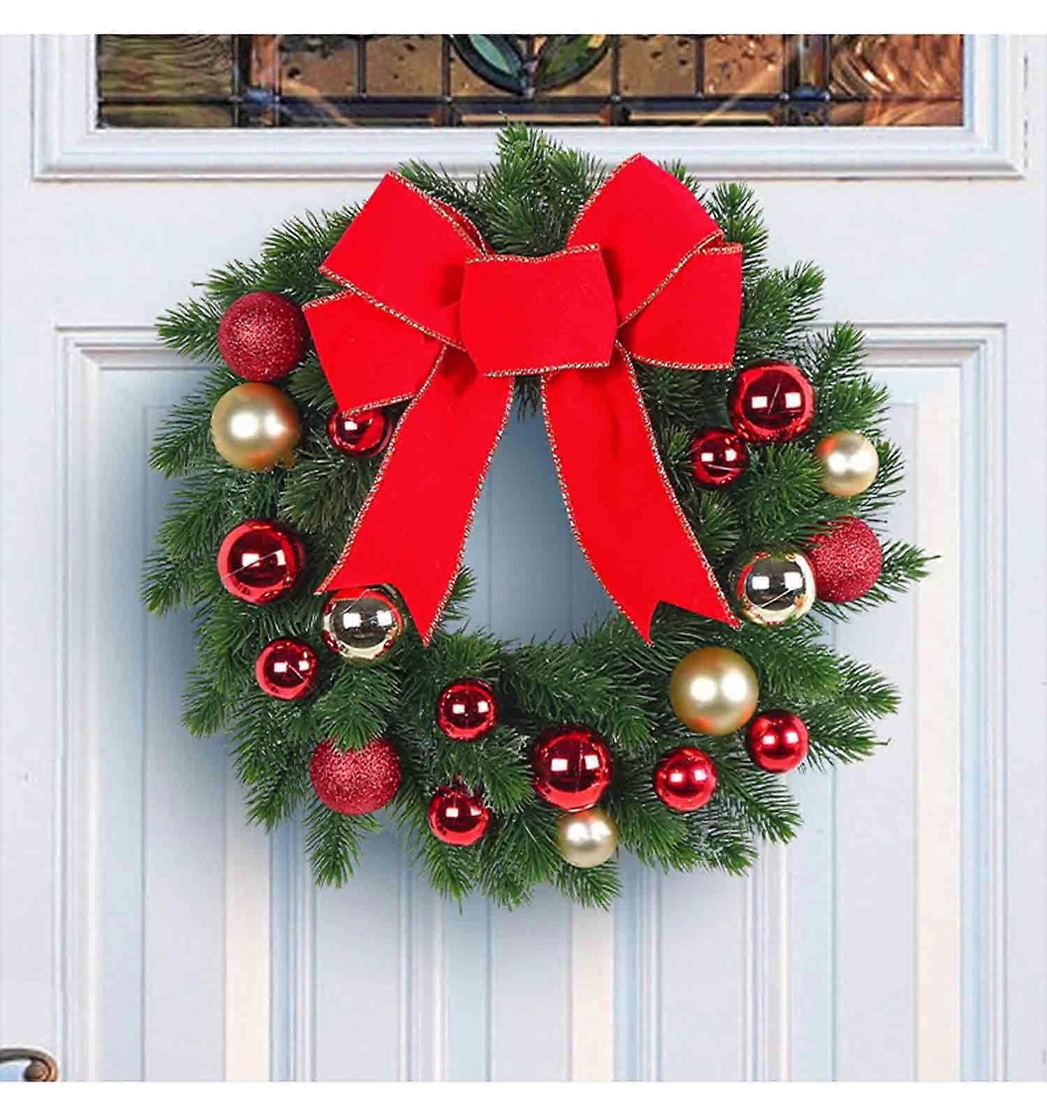 Lighted Christmas Wreath 11.8" Pre-Lit Artificial Xmas Wreath with Battery LED & Timer for Door, Window, Outdoor, Holiday Decor