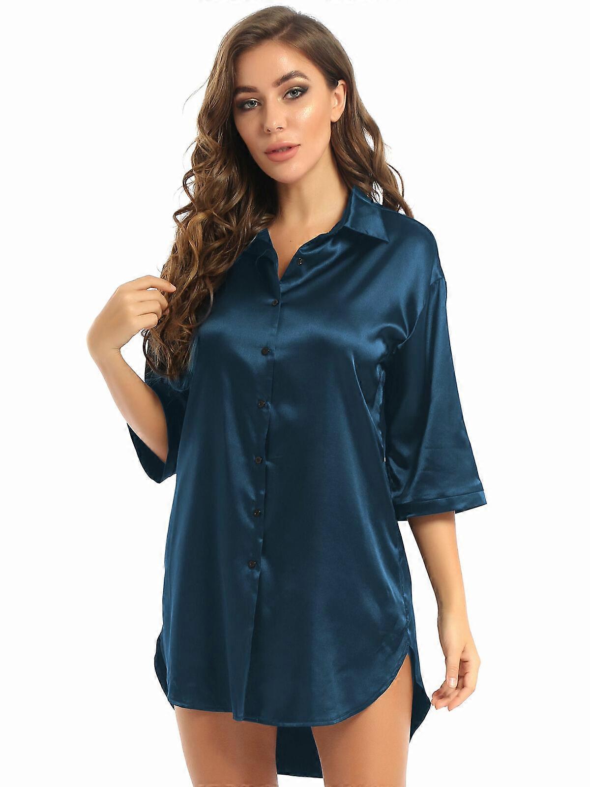 Women Satin Nightshirt Long Sleeve Casual Sleep Shirt Night Gown Dress Nightwear