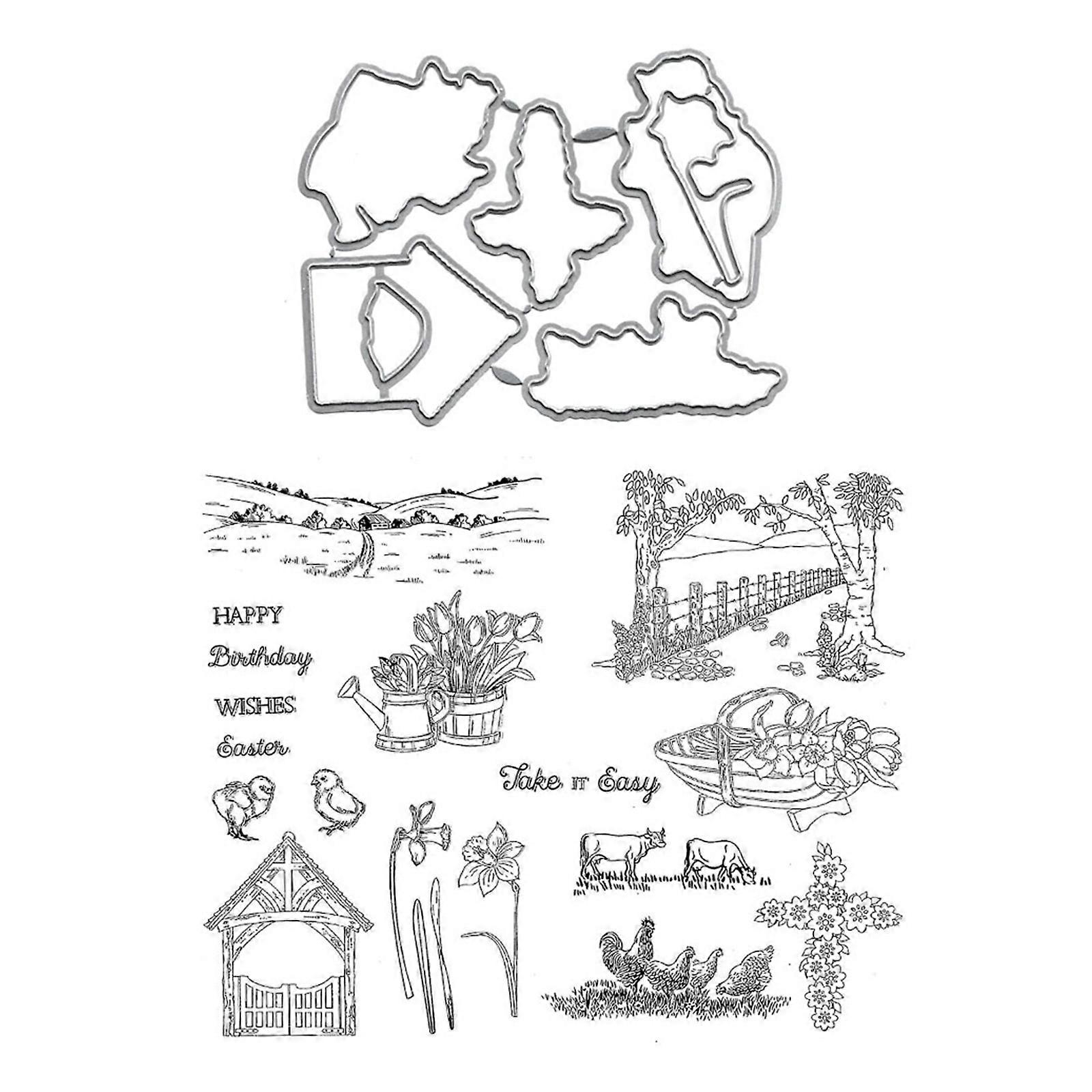 Features: FARM THEME CUTTING DIES. These farm theme embossing cut dies and scrapbooking silicone stampers are perfect for making gift card, greeting card, Christmas gift card, DIY scrapbooking, photo album, party invitations, paper bookmarks, and more. DIY EMBOSSING TEMPLATE. Perfect for adding unique decorations to your paper-crafts, birthday cards, greeting card, Christmas card, album, party invitation, scrapbook, journal, notebook, diary. PARTY FAVOR SUPPLIES. Perfectly fit for making holiday greeting cards, Christmas gift packing, wedding gift wrapping. Widely used for Christmas, Thanksgiving, Kids Birthday party, Wedding. EASY TO CRAFT. Great paper embossing tool for greeting card, invitation, scrapbook, photo album, etc. Extensive applications. The cutting shapes punch cutting dies on for ariety of materials, including paper, cardstock, chipboard, clay, bulletin board, felt board. RELIABLE QUALITY, REUSABLE. Made of carbon steel and silicone materials. Anti-break, rust-proof, wear resistant, smooth-surface and easy to clean. Specifications: Type: T1980; T1980C Size: Approx. 17.5x21.5cm/6.88x8.46in Material: Carbon Steel; Silicone Color: Silver; Transparent Weight: Approx. 63g-77g Package Includes: 1 Set Scrapbooking Die Cuts and Stamp Kit note: 1.Please allow 0-1cm error due to manual measurement. make sure you do not mind before you bid. 2.Due to difference between different monitors, the picture may not reflect the actual color of the item.