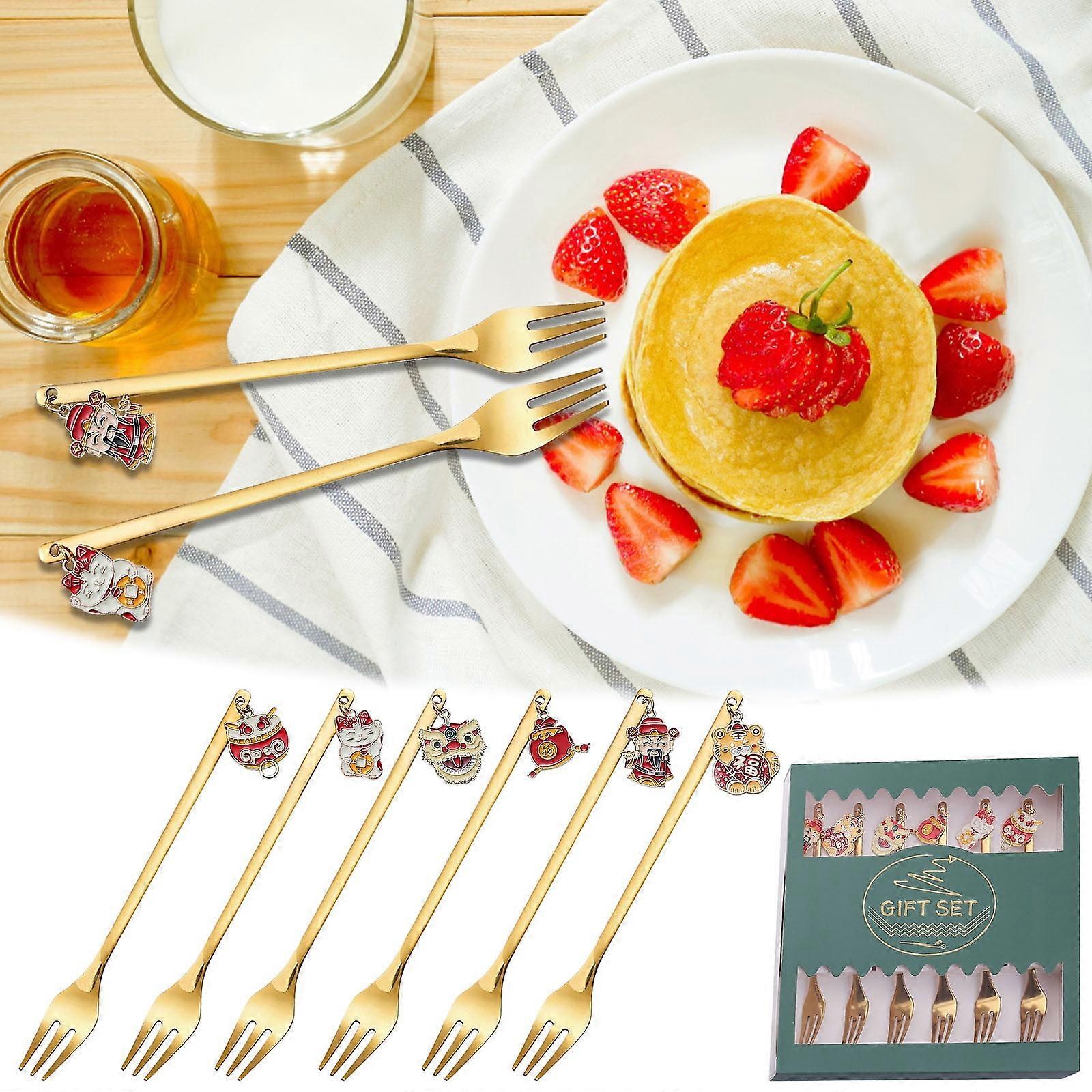Lmueinov 6-pieces New Year Tableware Dessert Fork Stirring Small Fork New Year Gift Fork Kitchen Savings