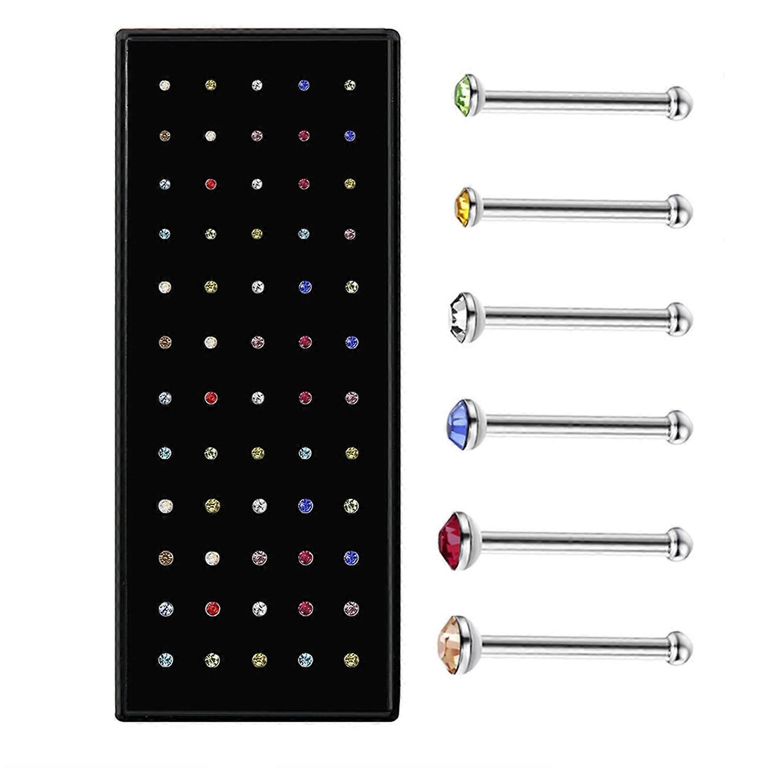 Aisiwm 1.5/2.0/2.5mm60 Pieces/box Stainless Steel Nose Stud With Diamond Titanium Nose Ring Piercing Jewelry