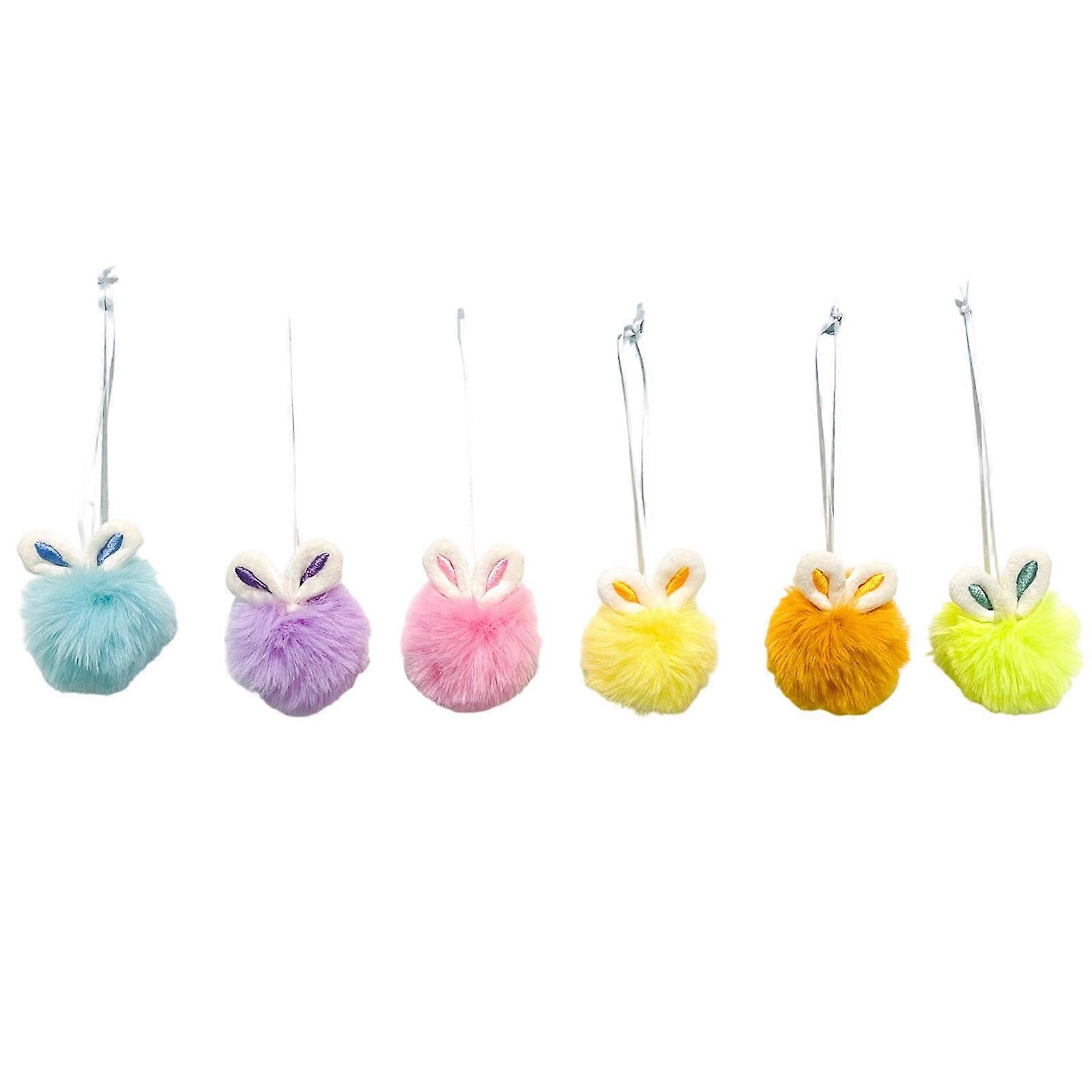 6Pcs Adorable Plush Hare Ear Furry Ball Ornament Keychain Decoration for Bag Phone Charm and Easter Party Decoration Multicolor