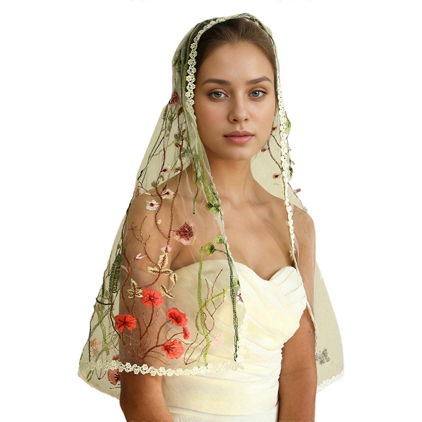 Embroidery Flower Wedding Veil for Party Gathering Bridal Veil Wedding Headpiece Tulle Bride Veil Shawl for Engagement Multicolor