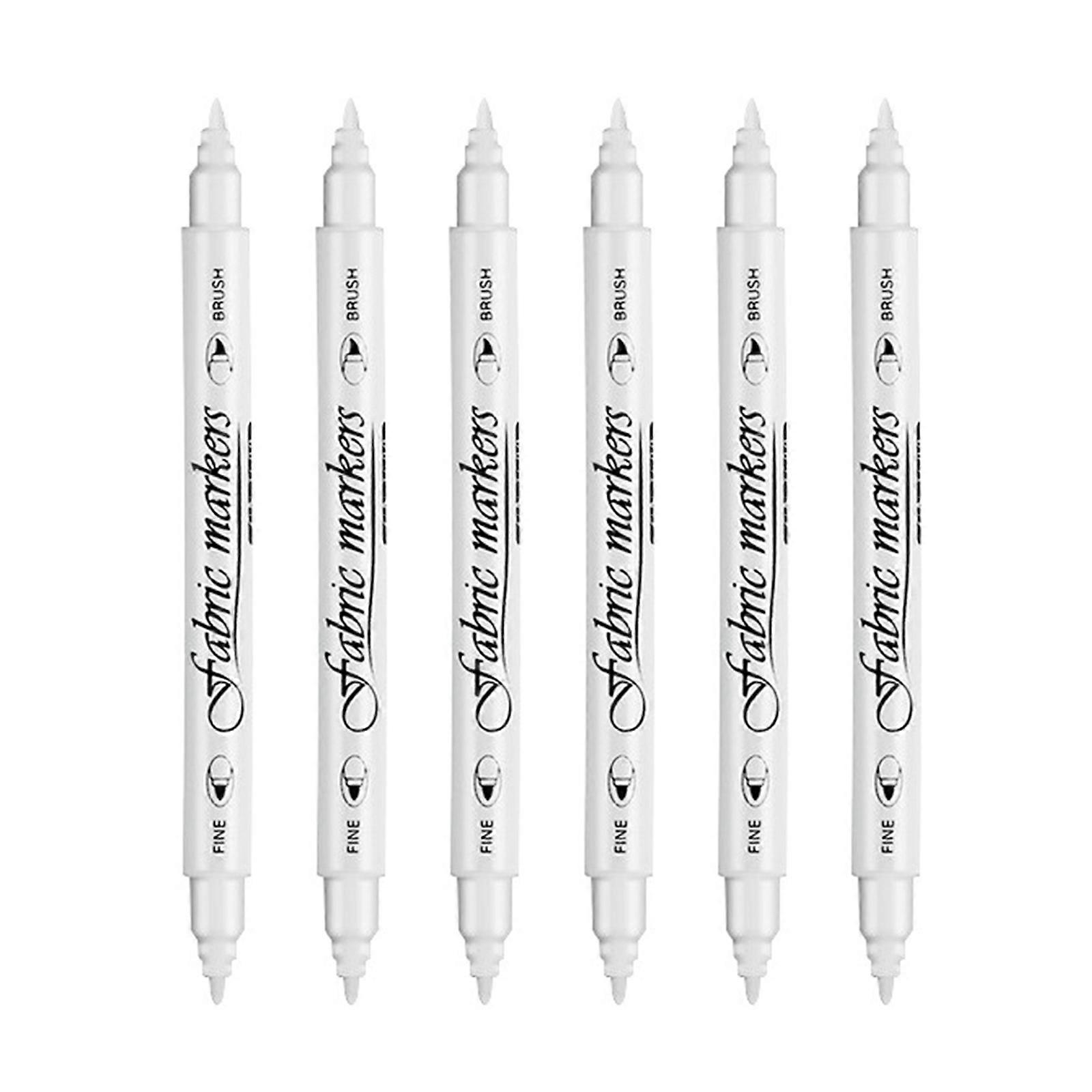 6Pcs Fabric Painting Markers Double Ended Fabric Marker with Fine Tip, for Clothing Painting, Tshirt, Canvas Bag, Shoe White