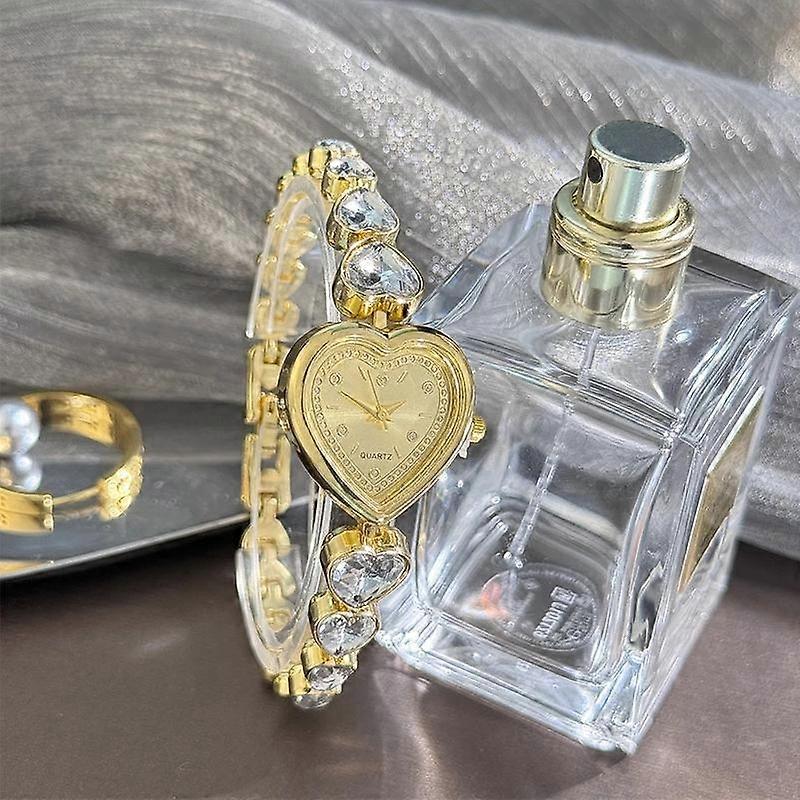 Women's Fashion Elegant Round Heart Jewelry Bracelet Watch Dial Quartz Watch, Sparkling Heart-Shaped Zirconia Bracelet Watch