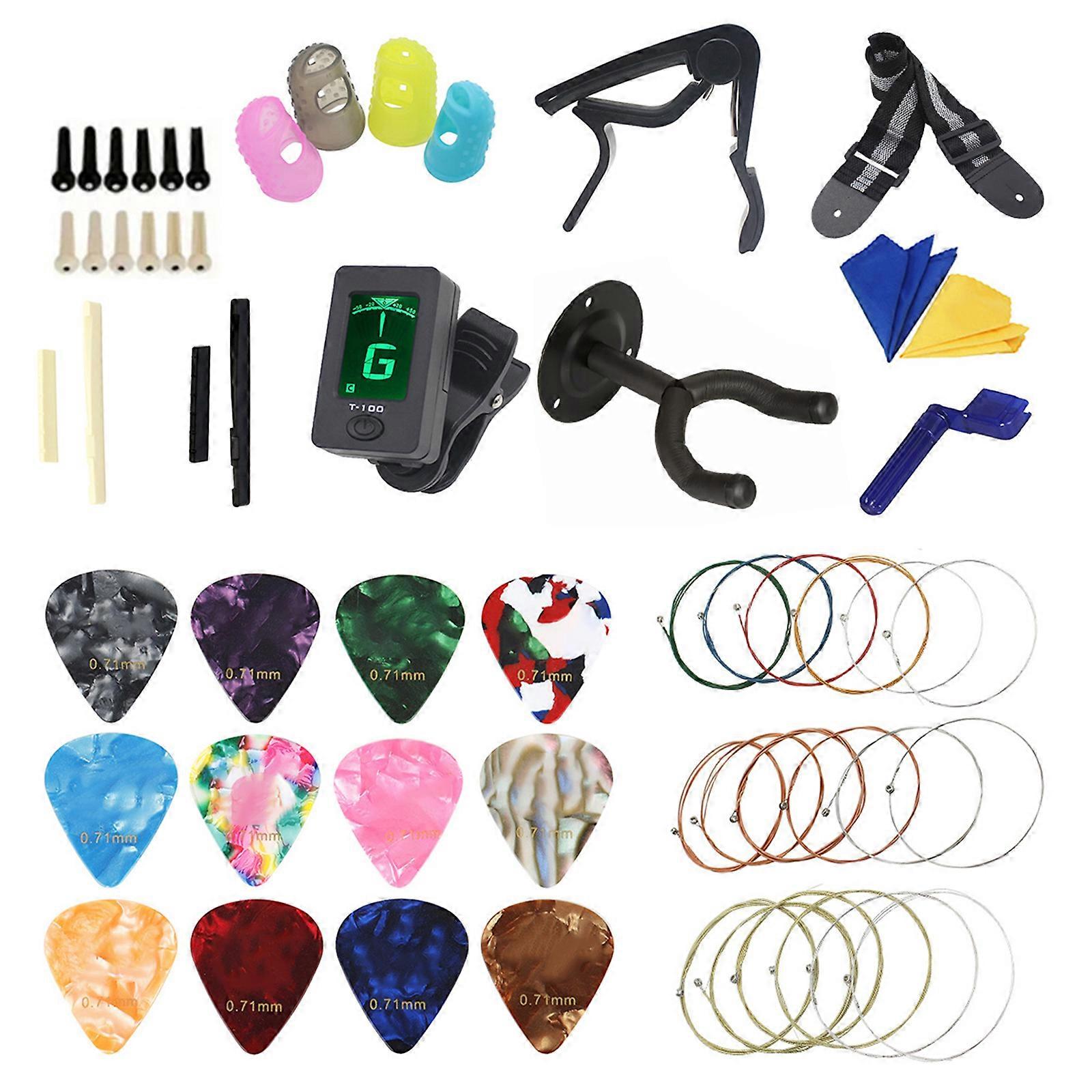 Guitar Accessories Set String Replacement Changing Tool Including Guitar String, Picks, Capo, String Winder, Bridge Pins Multicolor