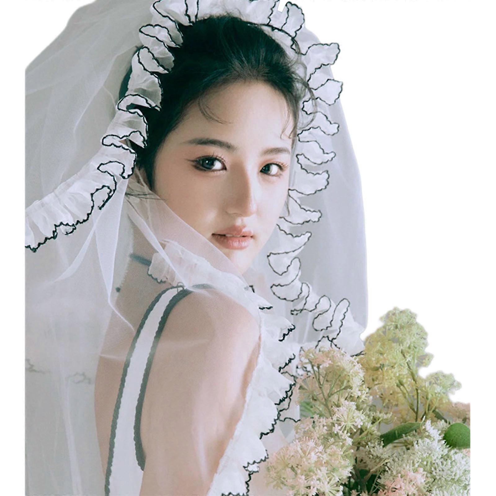 Bridal Veil Bride Elaborate Veil Headscarf Ruffled White Bachelorette Party Bride Veil Sheer Head Scarf Multicolor