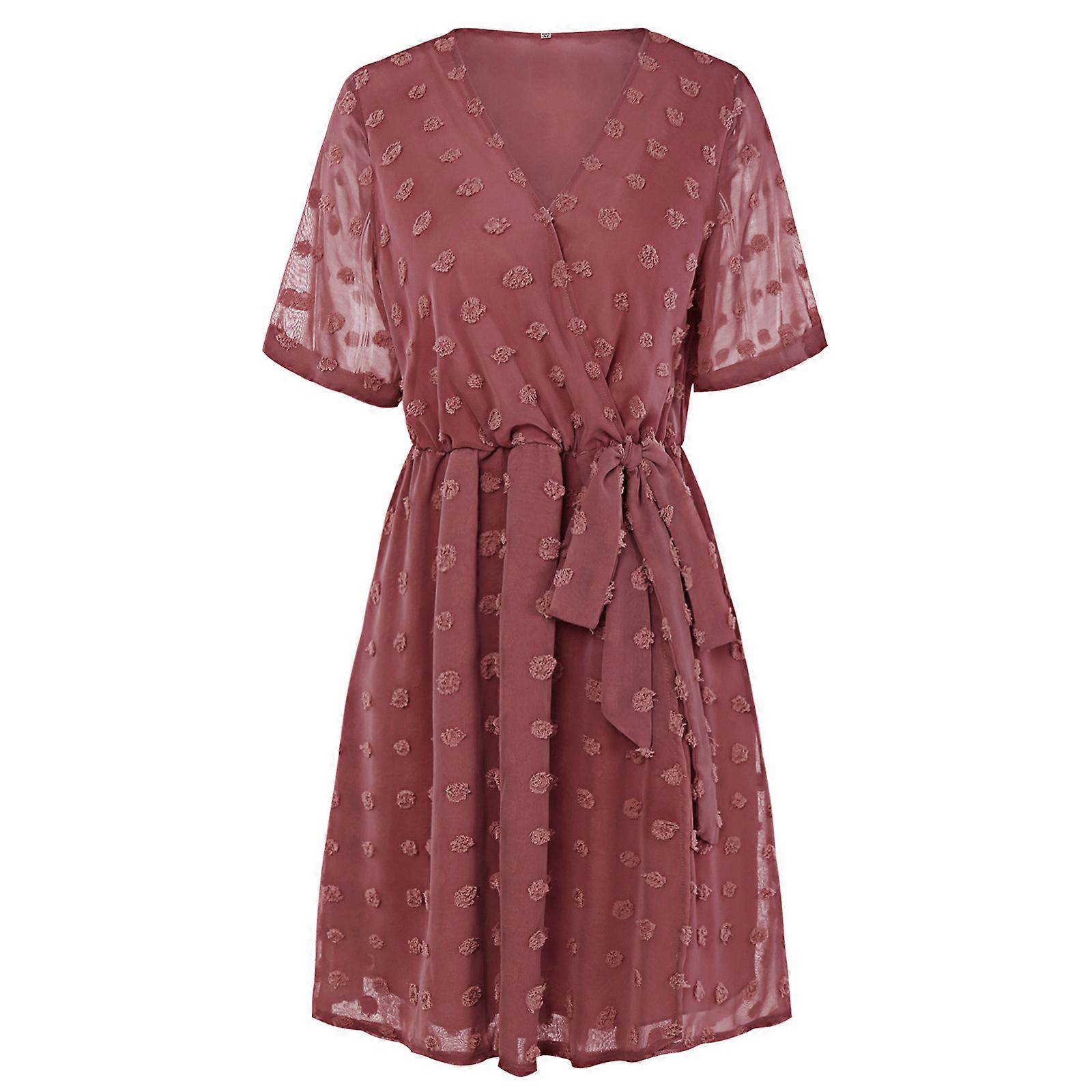 Features: brand new and high quality Made of high quality polyester, lightweight, breathable, skin-friendly, soft and comfortable to wear. Roll up cuffed short sleeves, sexy wrap front v neckline, simple plain solid color, for swiss dot pompom jacquard. Double layer, elastic empire high waist, side tie bandage at waist, a line style, flared flowy hemline, above knee length. Easily match with your favorite high heels, boots, for jacket, coat, shiny accessories, and other fashion items. Suitable for casual daily wear, travel, holiday, vacation, beach, office, party, night out, cocktail, special occasions, etc. Specifications: Material: Polyester Color: Apricot, Tangerine, Pink, Blue Size: S/for M/L/XL(Chinese Size,follow the size chart to select please) Size:S Length:86cm(33.85inch) Bust:94cm(37.01inch) Waist:66cm(25.98inch) Sleeve:24cm(9.44inch) Size:M Length:88cm(34.64inch) Bust:98cm(38.58inch) Waist:70cm(27.55inch) Sleeve:24.5cm(9.64inch) Size:L Length:90cm(35.43inch) Bust:104cm(40.94inch) Waist:76cm(29.92inch) Sleeve:25.2cm(9.92inch) Size:XL Length:92cm(36.22inch) Bust:110cm(43.31inch) Waist:82cm(32.28inch) Sleeve:25.9cm(10.19inch) Quantity: 1 pc Package Includes: 1 x Dress(without retail package) note: 1.Asian people size is 1 or 2 sizes smaller than European and American. 2.Please note that low temperature washed,do not decolorize and place under the blazing for sun for quite a long for time. 3.As different measuring methods,it will occur 1-3 for cm deviation about the items,please ensure that it is okay for you before ordering. 4.Because of different monitors and lamplight,the picture may not reflect the actual color of the item,really thank you for your kind understanding!