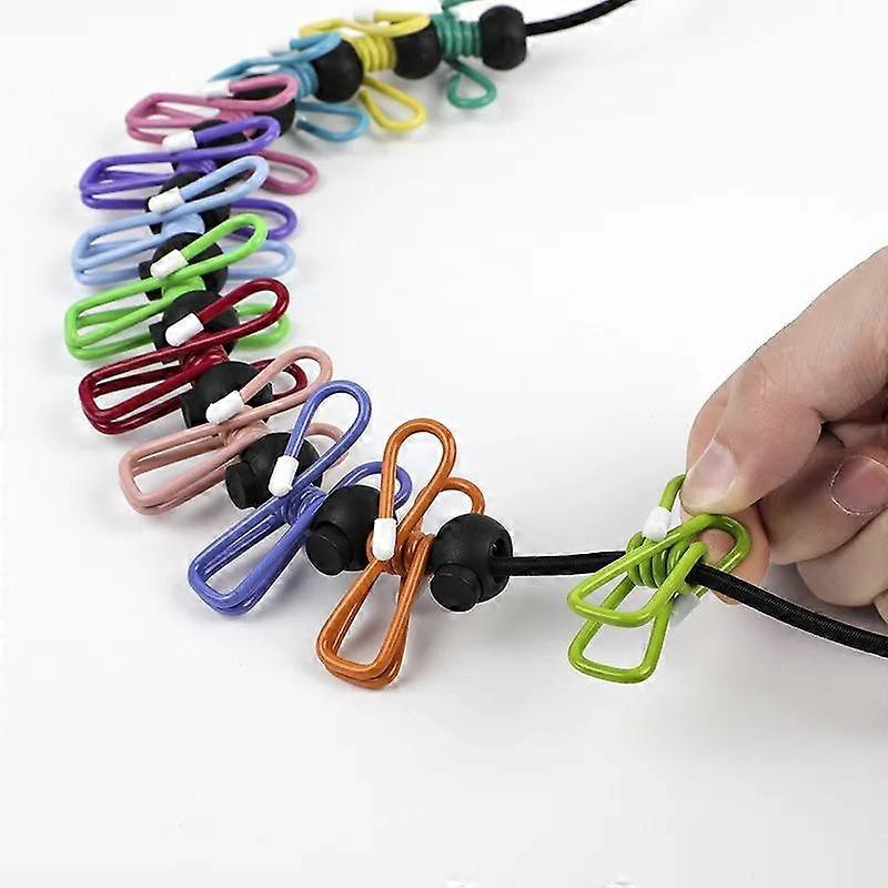 Portable Elastic Travel Clothes Hanger, Windproof Outdoor Drying Line with 12 Clips, Ideal for Backyard Balcony Laundry