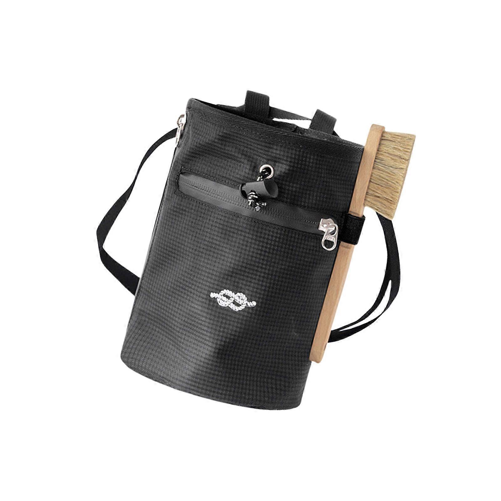 Bouldering Chalk Bag Bucket with Zippers Pocket & Drawstring Closure Adjustable Belt Chalk Bag for Climbing Gymnastics Black