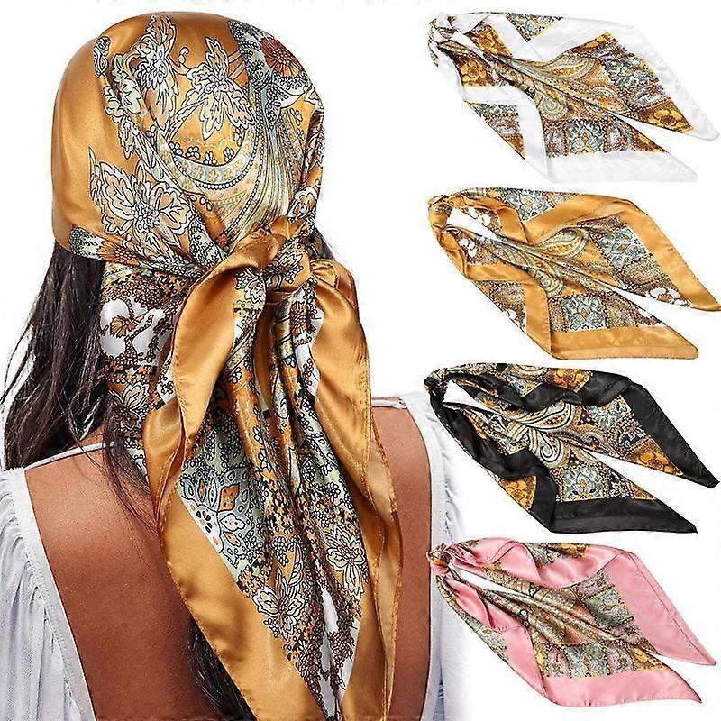 4PCS/Set 35'' Printed Square Head Scarf Neck Scarves for Women Silk Like Hair Kerchief Bandanas Neck Scarf Sleeping Head Wraps Hair Band Hea