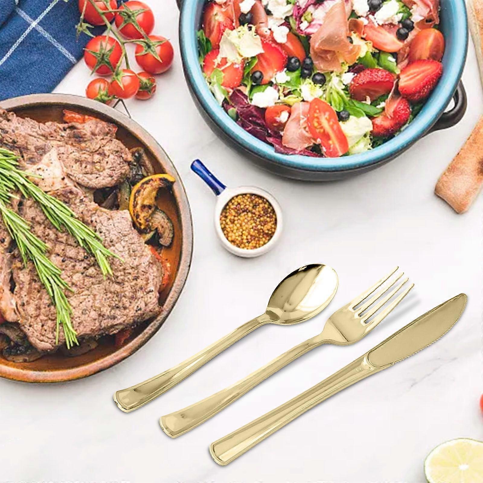 Disposable Fork Gold Birthday Party Tableware Set Plastic Rose Gold Party Western Food Gold-plated Knife Fork Spoon Clearance