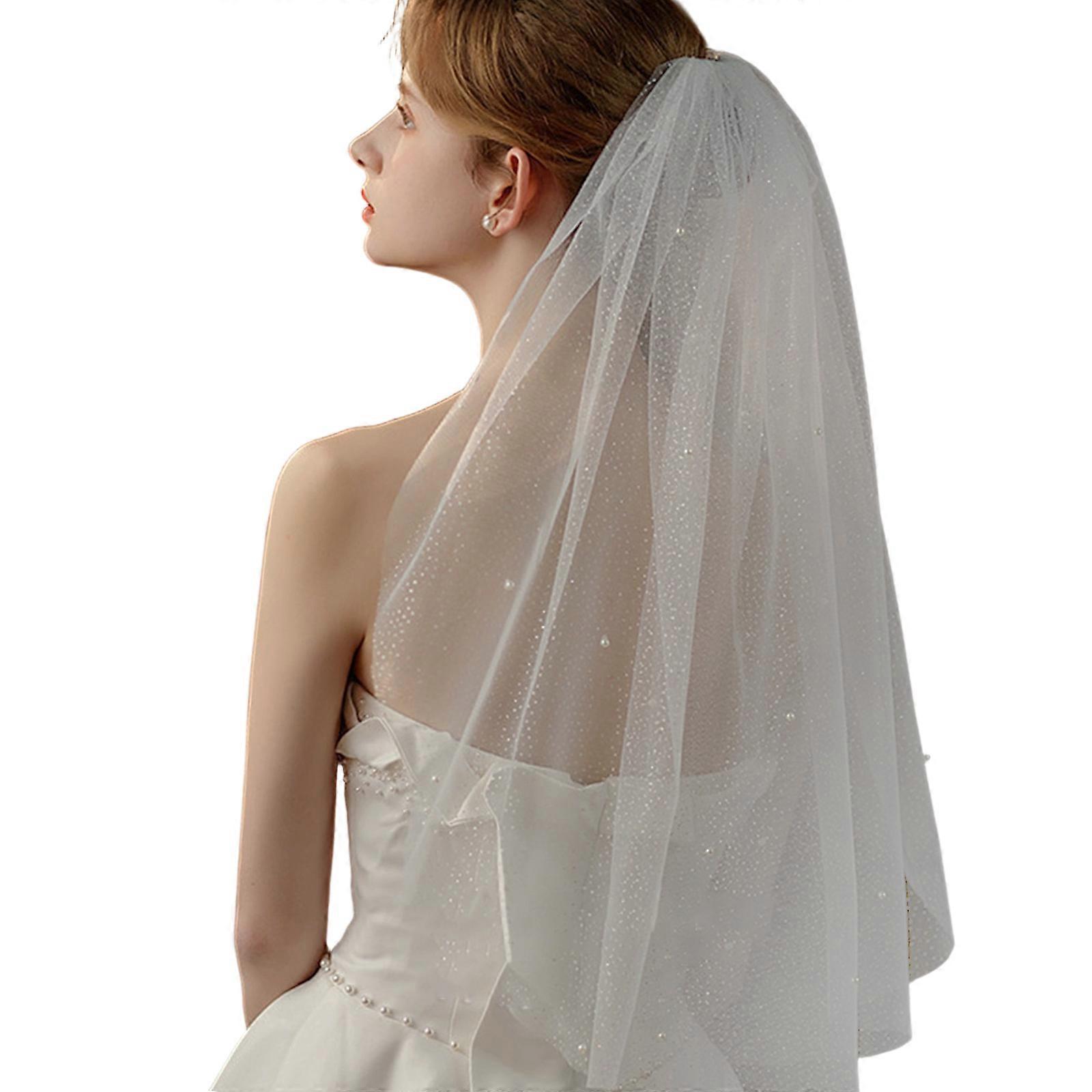Luxurious Glitter Bridal Veils Airy Sheer Hair Accessory For Wedding Pearls Adorned Headpiece Classical Design milky