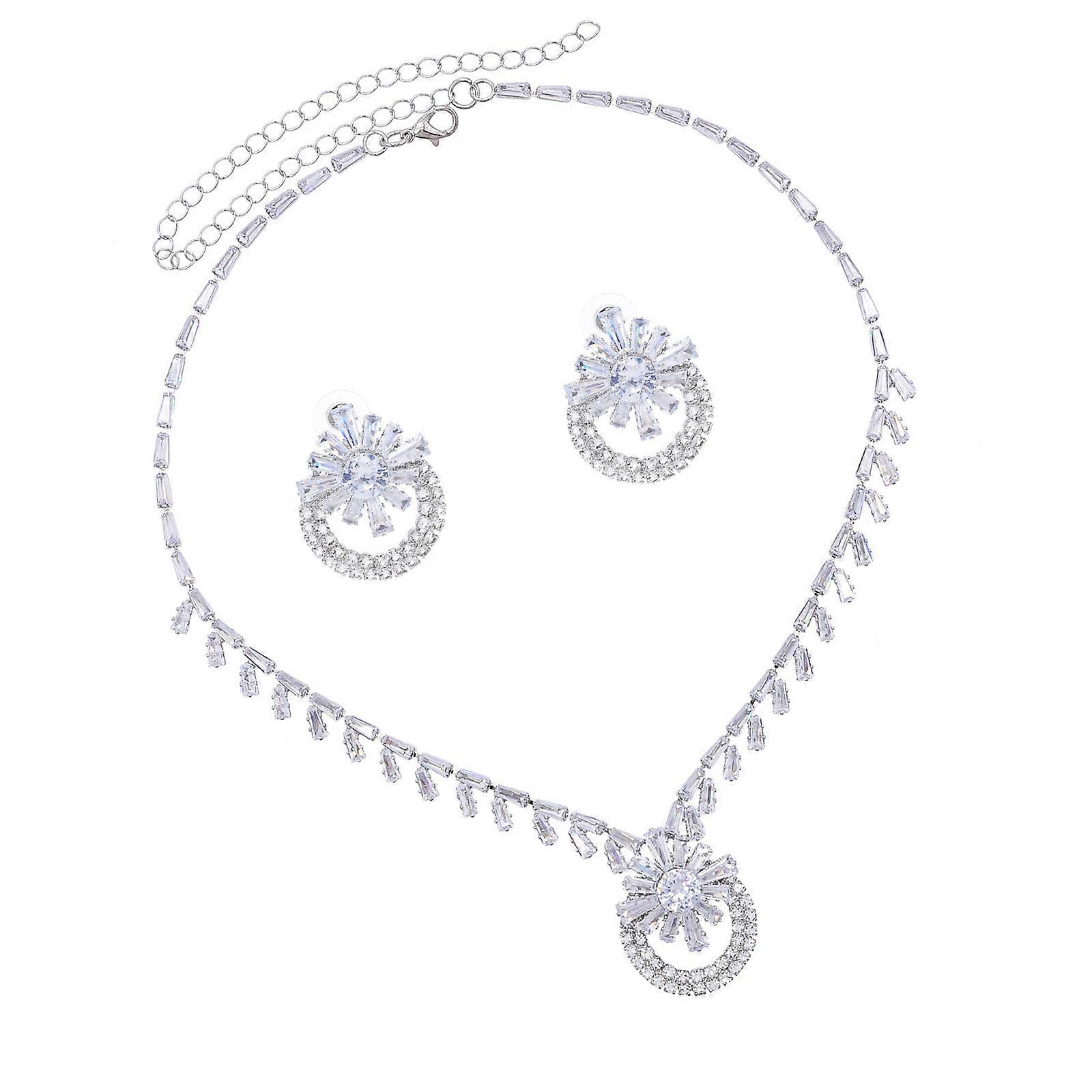 Shimmering Two Piece Jewelry Set Rhinestones Earrings And Necklace Combo Tarnish Resistant Alloy For Sensitive Skin Gift Ready Multicolor