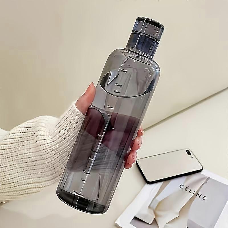 PC Plastic Water Bottle with Time Markers 16.91oz Leakproof Drop-Resistant BPA-Free Sport Bottle for Gym Travel Outdoor Activiti